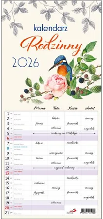Kalendarz ma wymiary 22,2 cm x 48,5 cm. Podobny kalendarz dla rodzin możesz kupić również w formacie dużym oraz mini.