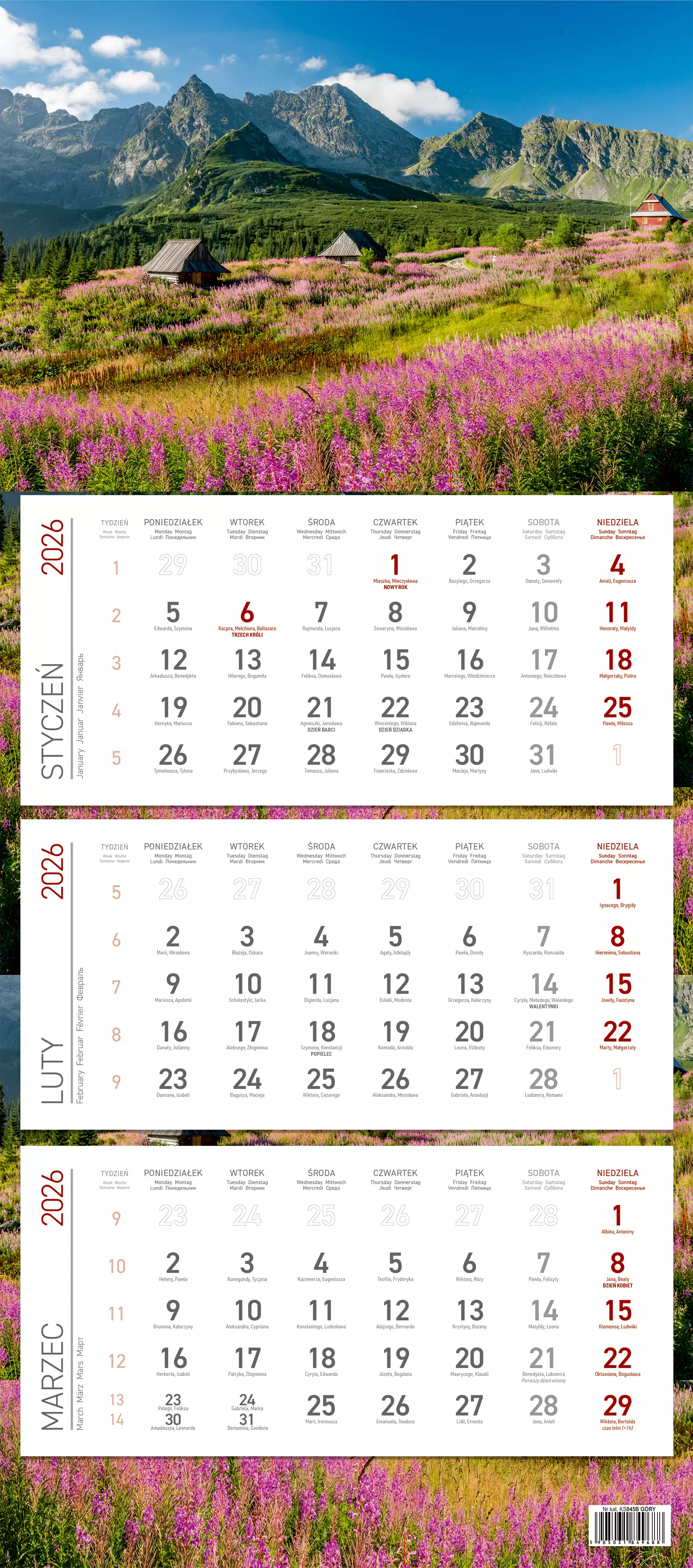 Opakowanie Kalendarz 2026 ścienny trójdzielny Góry