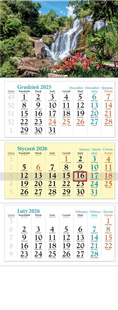 Kalendarz 2026 ścienny trójdzielny Kaskada