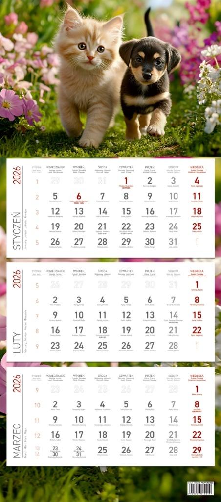 Kalendarz 2026 ścienny trójdzielny Przyjaciele