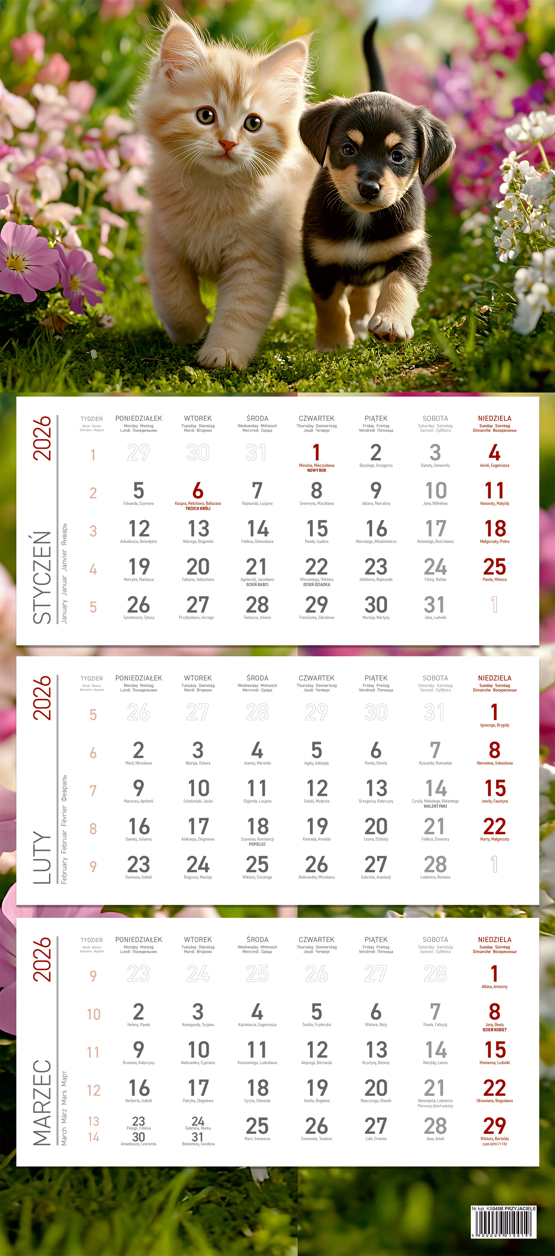 Opakowanie Kalendarz 2026 ścienny trójdzielny Przyjaciele