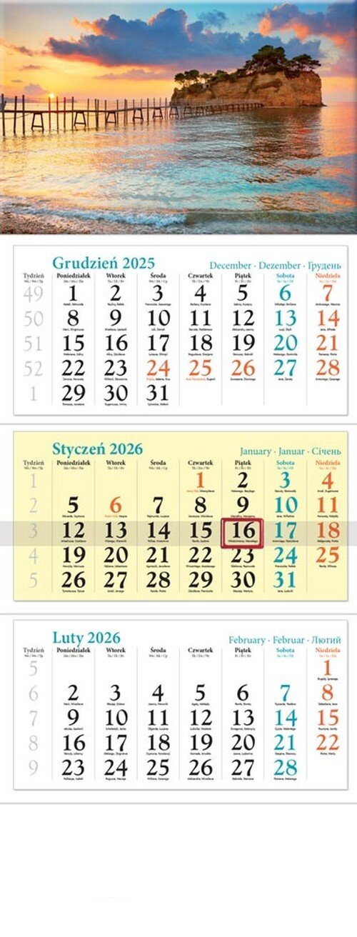 Kalendarz 2026 ścienny trójdzielny Wyspa