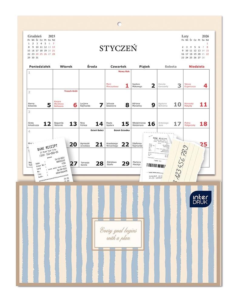 Kalendarz 2026 ścienny z kieszonką 23,5x31 Stripes