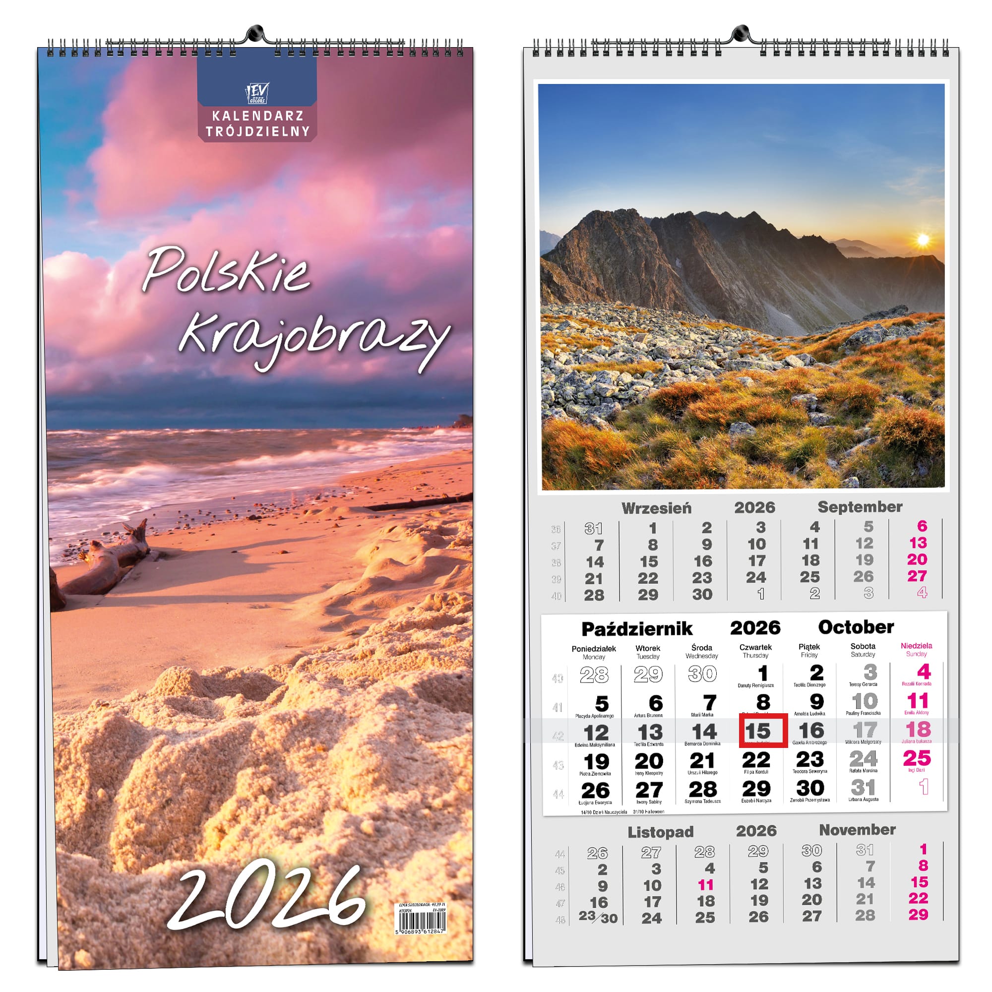 Kalendarz 2026 trójdzielny 13 planszowy Pejzaże