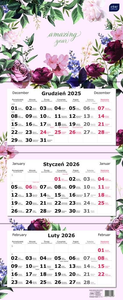 Opakowanie Kalendarz 2026 trójdzielny 82,5x34cm Kwiaty