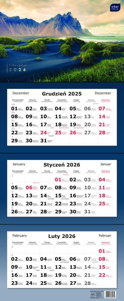 Kalendarz 2026 trójdzielny 82,5x34cm Widoki