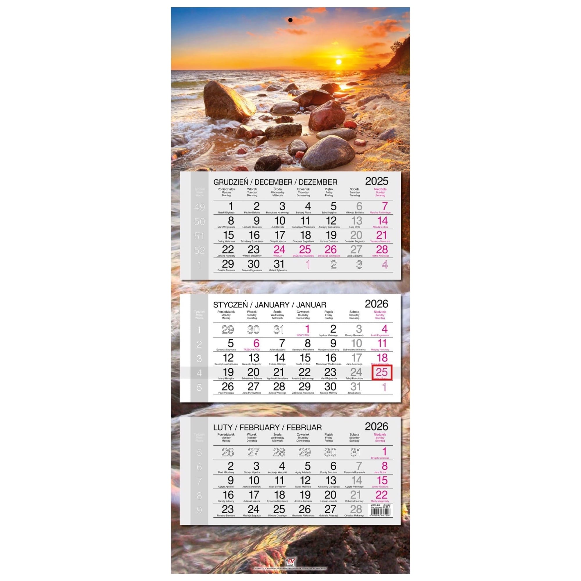 Kalendarz 2026 trójdzielny główka płaska Bałtyk