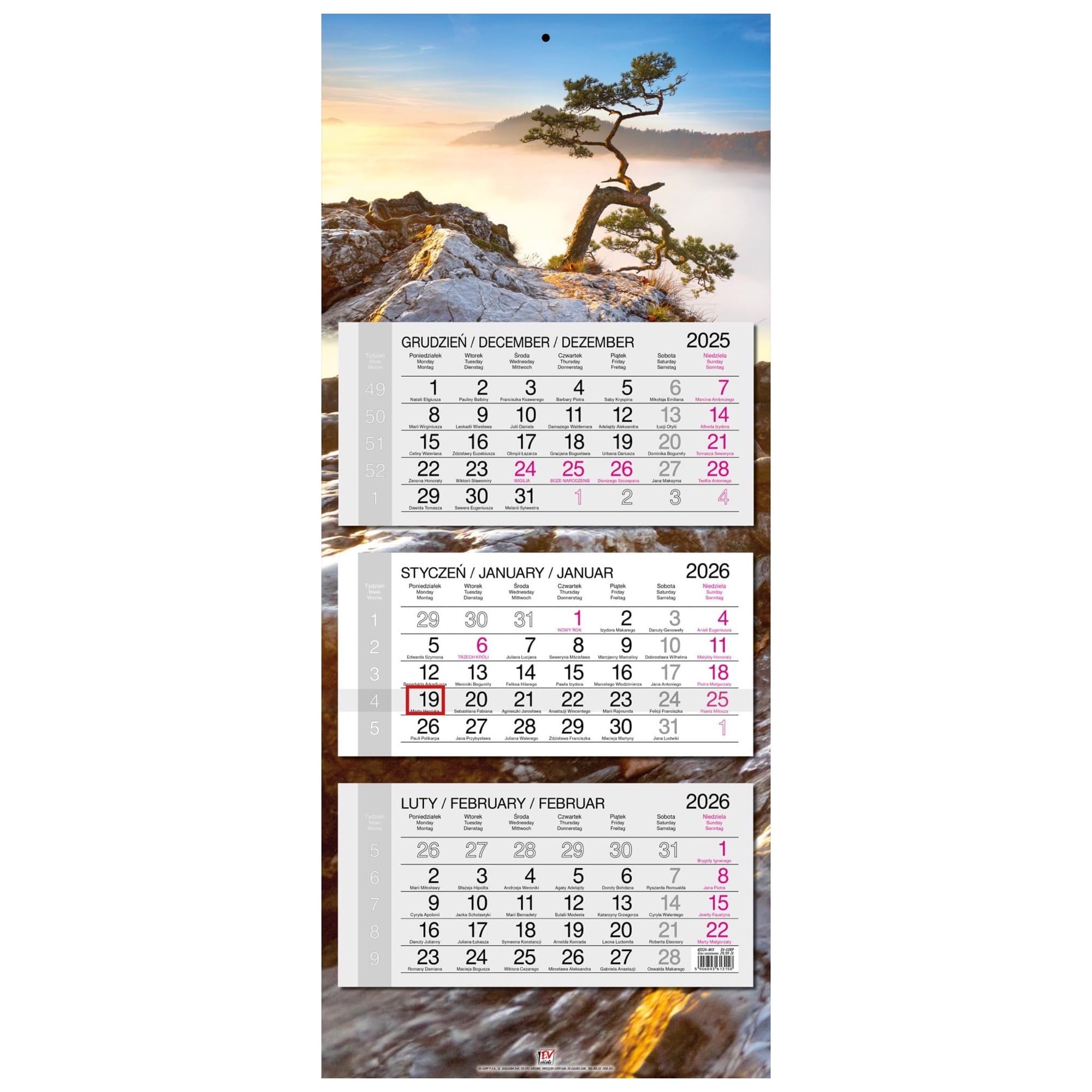 Opakowanie Kalendarz 2026 trójdzielny główka płaska Pieniny