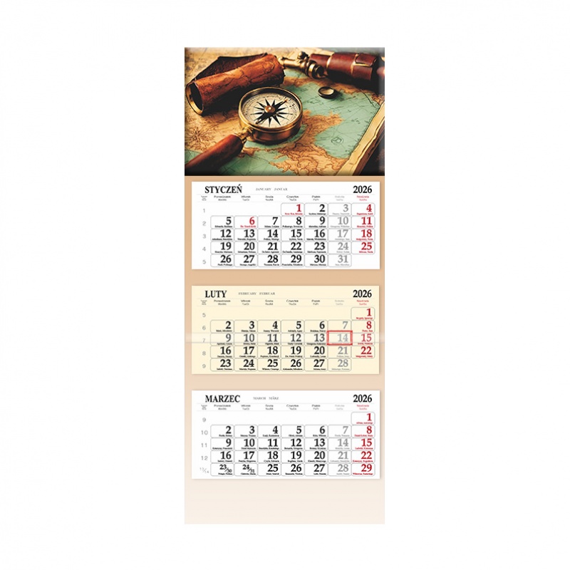 Opakowanie Kalendarz 2026 trójdzielny Kompas