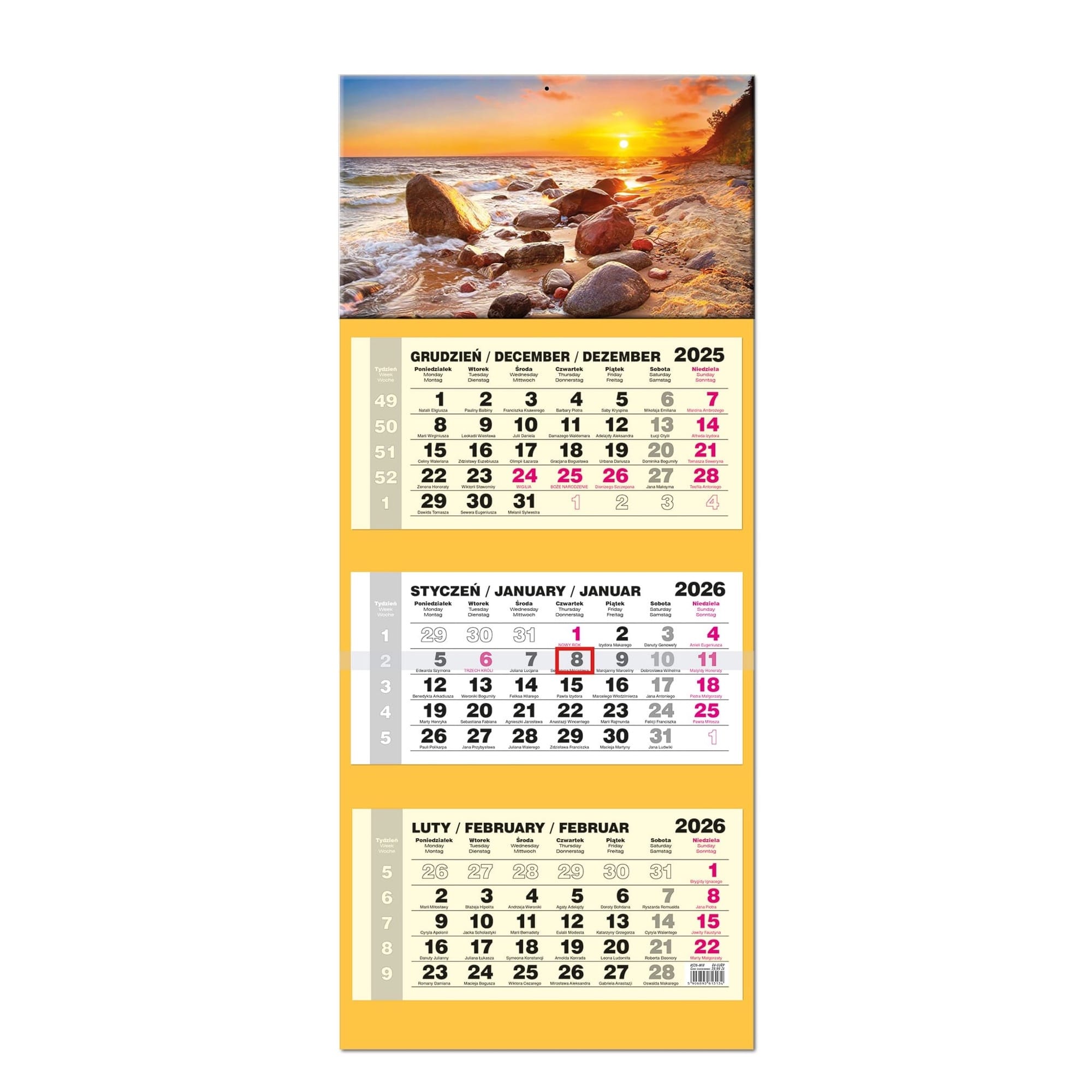 Kalendarz 2026 trójdzielny LUX główka wypukła Bałtyk