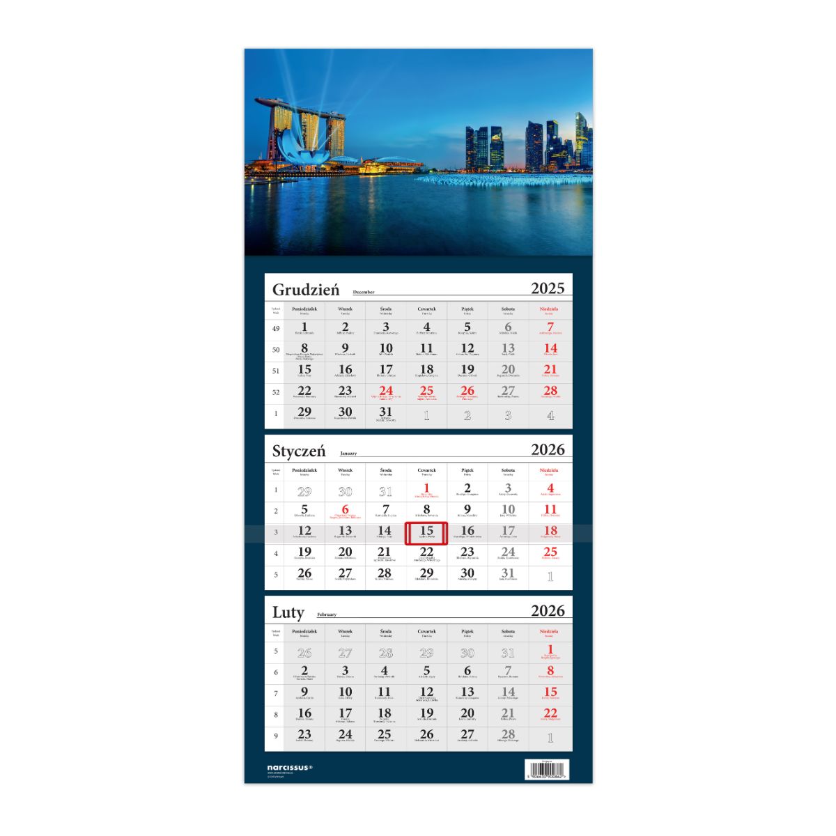 Kalendarz 2026 trójdzielny Lux Singapur HELMA