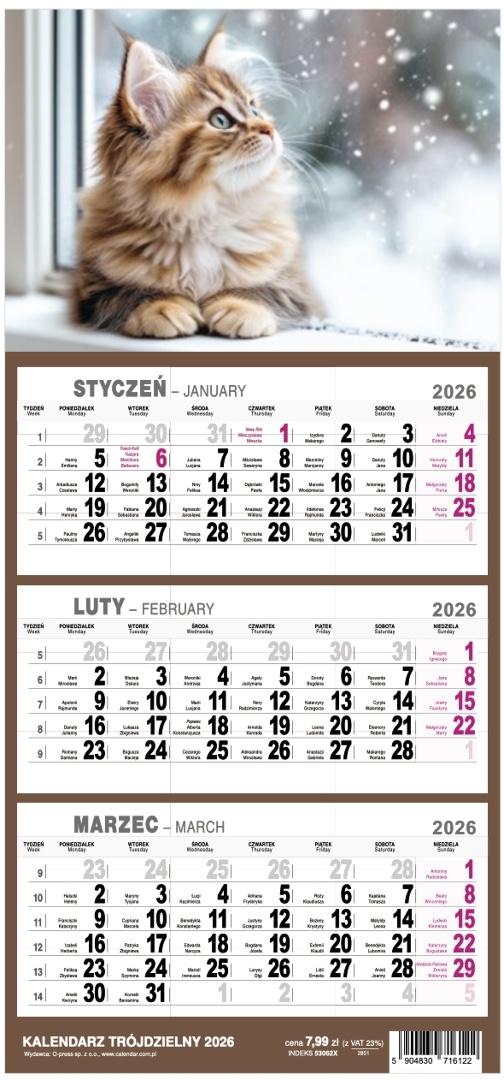 - Zawiera czytelne kalendarium z imieninami i świetami w języku polskim