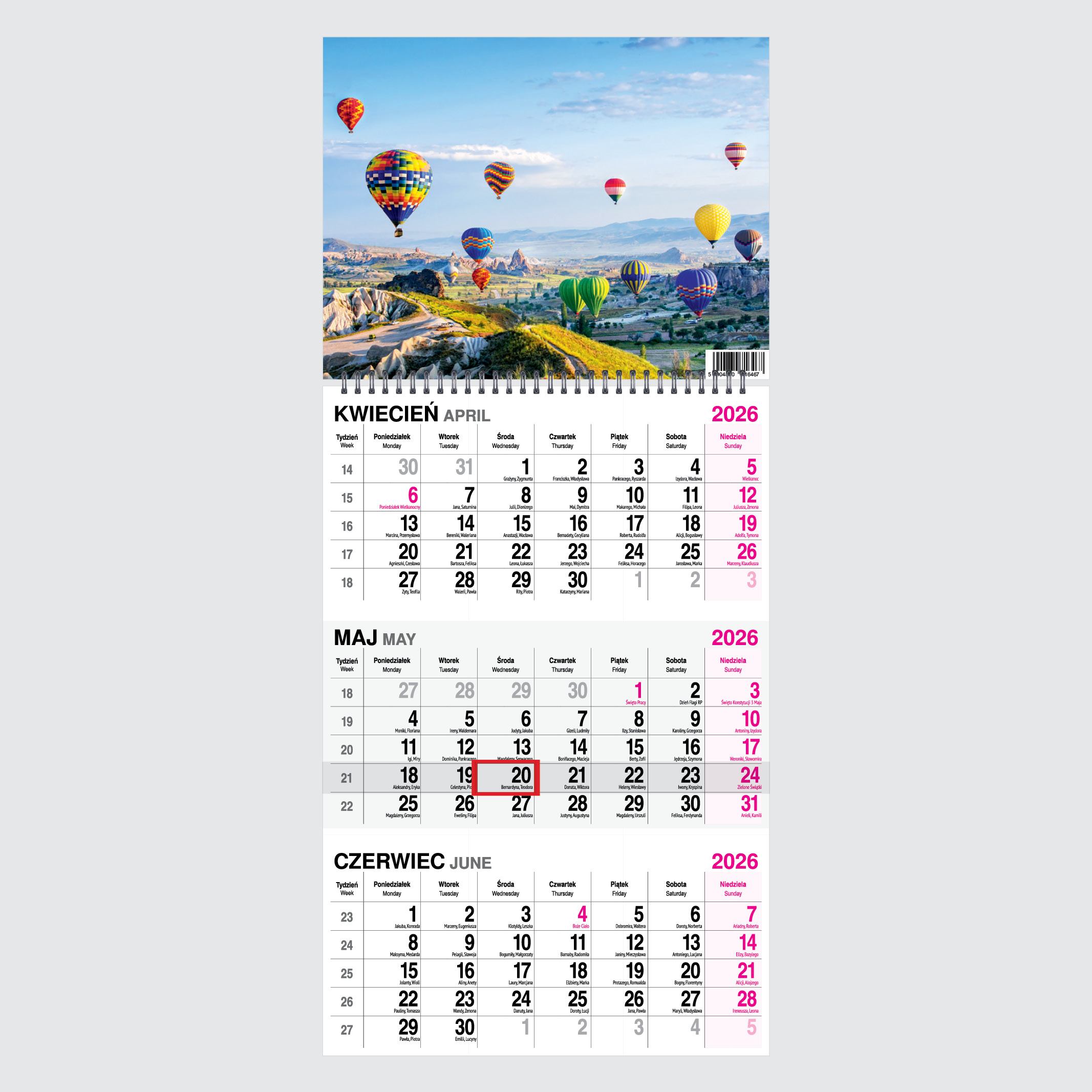 Kalendarz został połączony solidną spiralą z eurozawieszką, która umożliwia łatwe i bezpieczne zawieszenie go na ścianie. Format 280x635 mm gwarantuje czytelność kalendarium oraz komfort użytkowania, a spiralne łączenie zapewnia wygodę podczas przewracania stron i estetyczny wygląd.