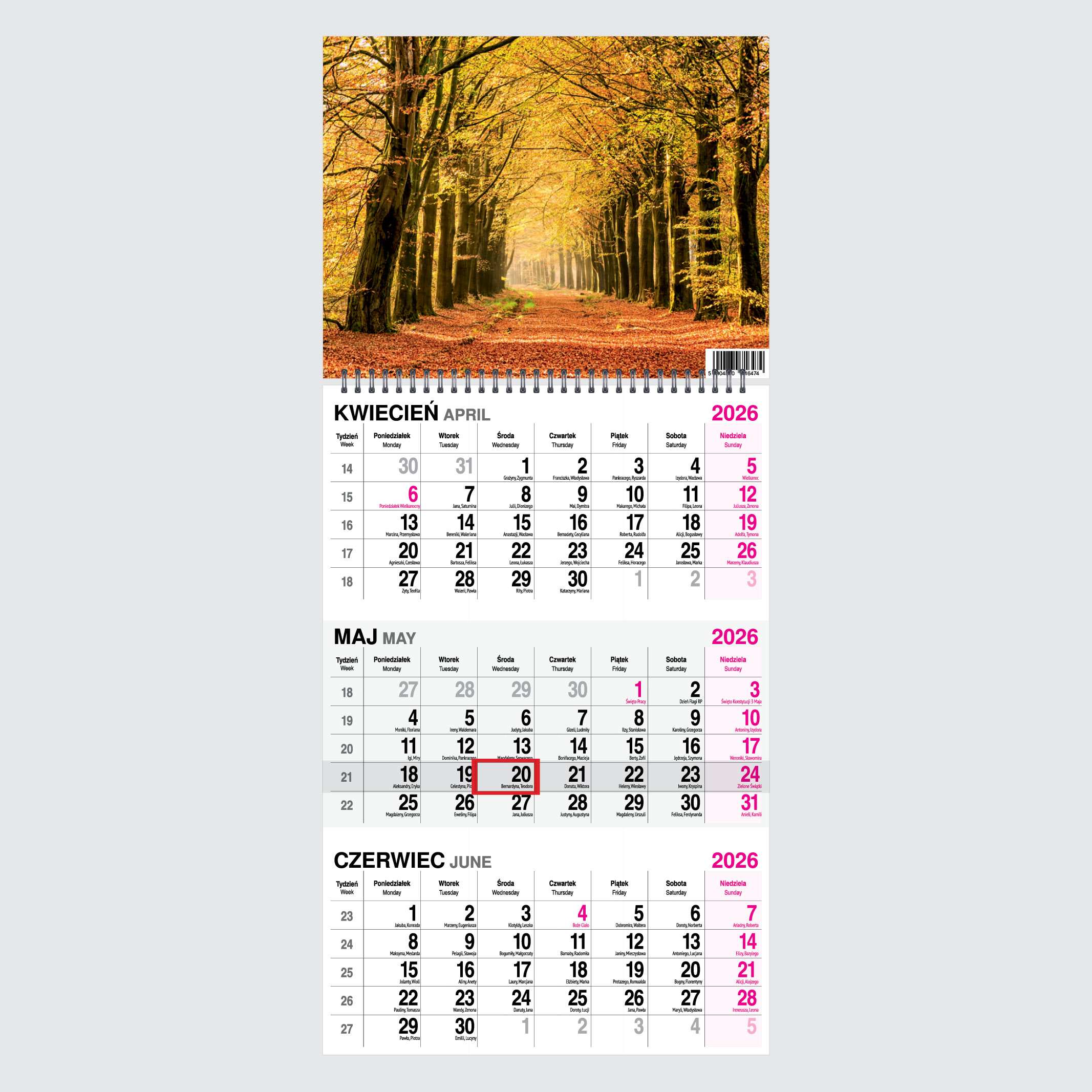 Opakowanie Kalendarz 2026 trójdzielny na spirali Las