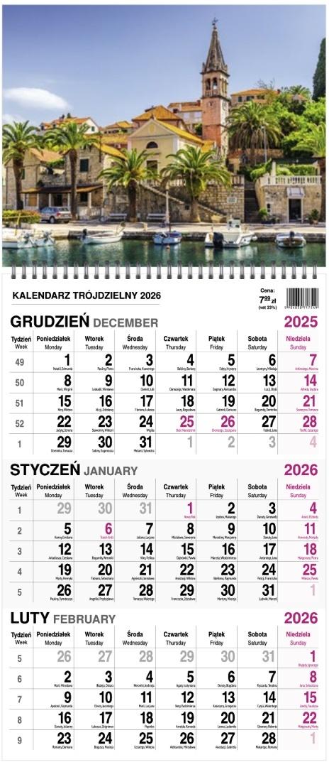 - Zawiera czytelne kalendarium z imieninami i Świetami w języku polskim