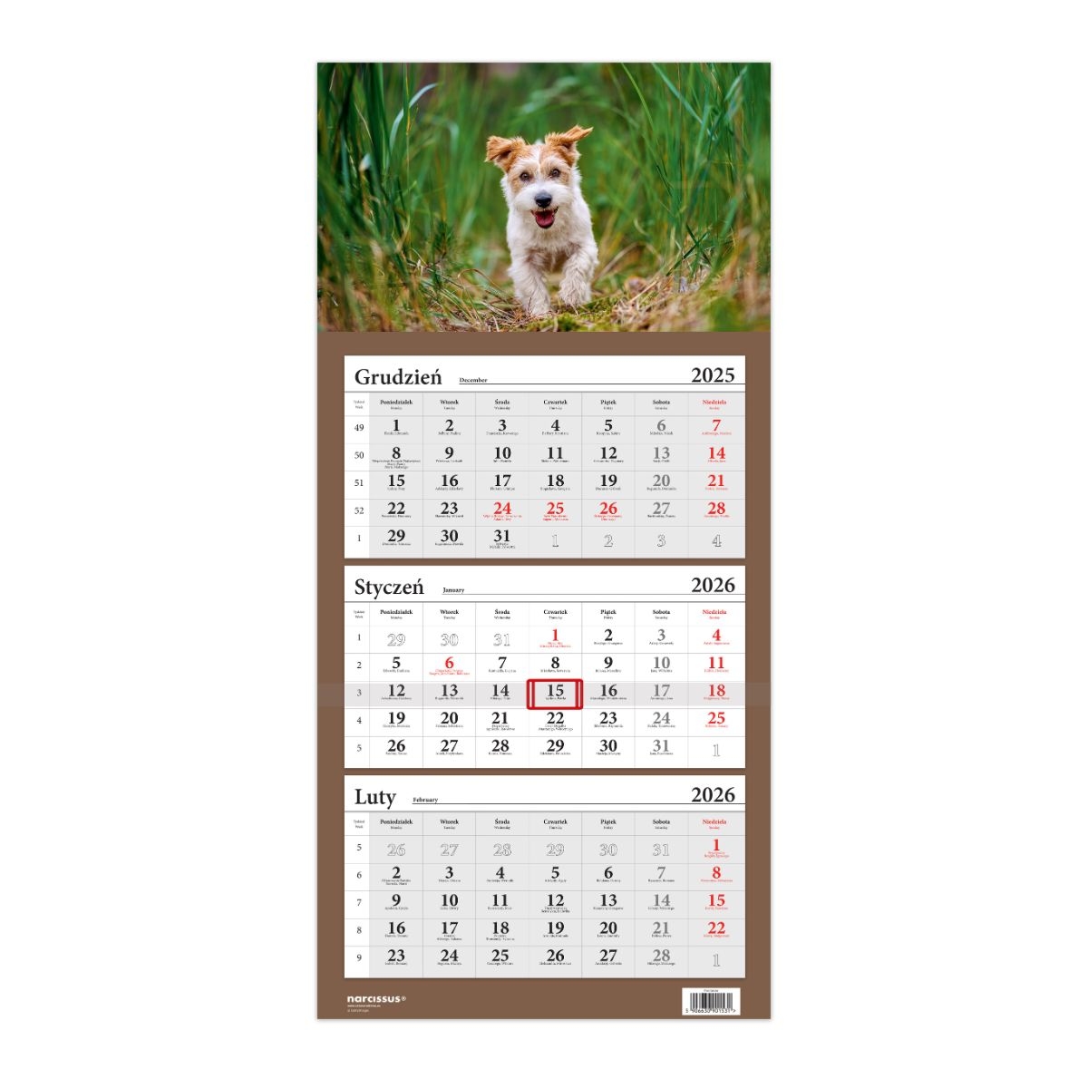 Kalendarz 2026 trójdzielny Pies terier HELMA