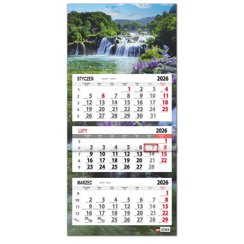 Kalendarz 2026 trójdzielny płaska główka Łubin
