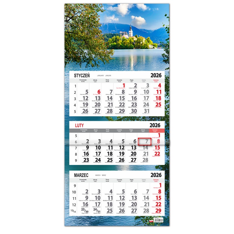Kalendarz 2026 trójdzielny płaska główka Zamek