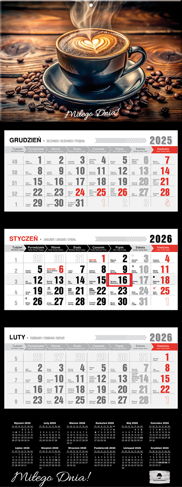 Opakowanie Kalendarz 2026 trójdzielny premium kawa