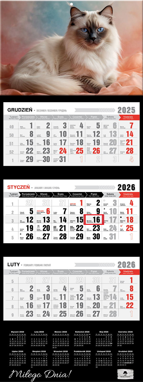 Opakowanie Kalendarz 2026 trójdzielny premium kot