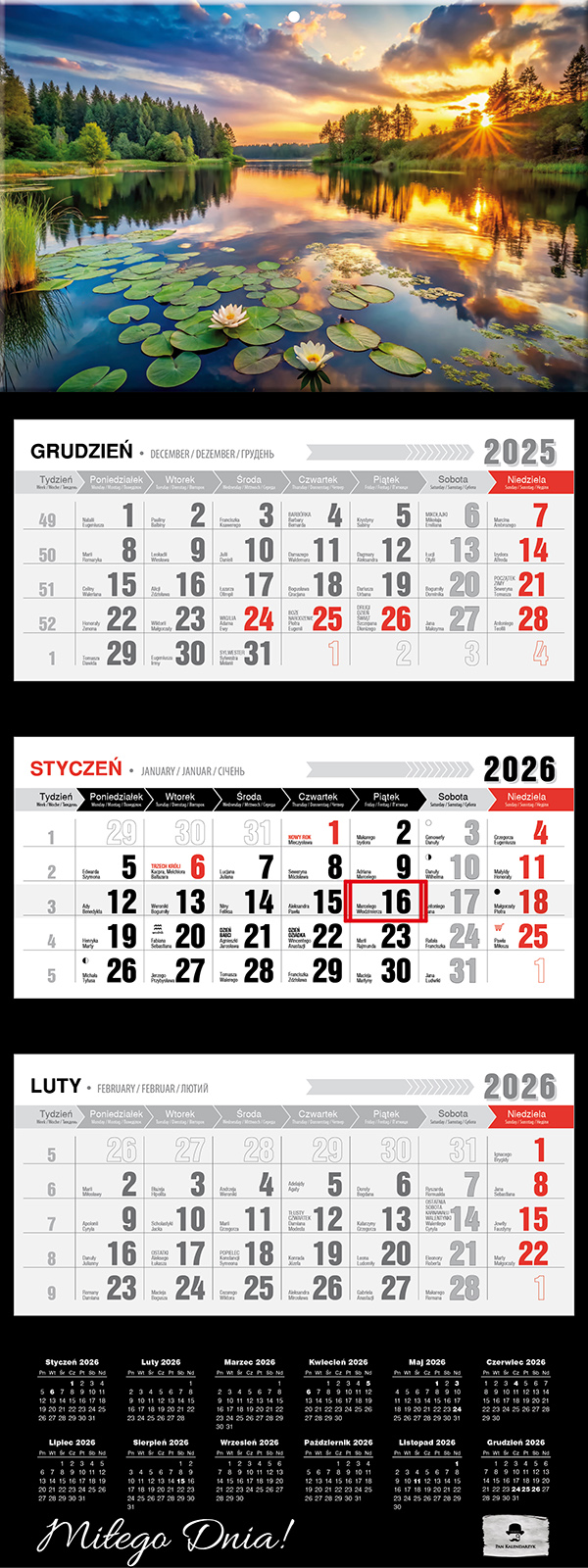 Opakowanie Kalendarz 2026 trójdzielny premium mazury