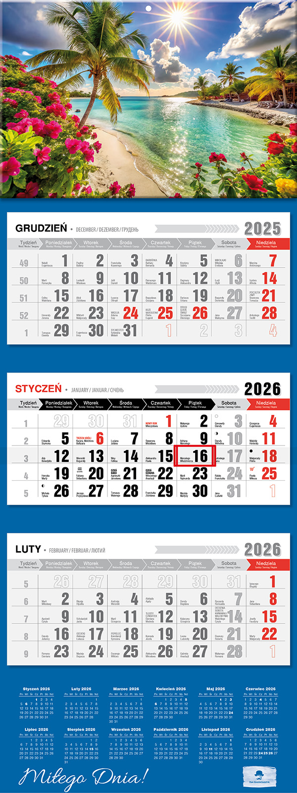 Opakowanie Kalendarz 2026 trójdzielny premium topiki