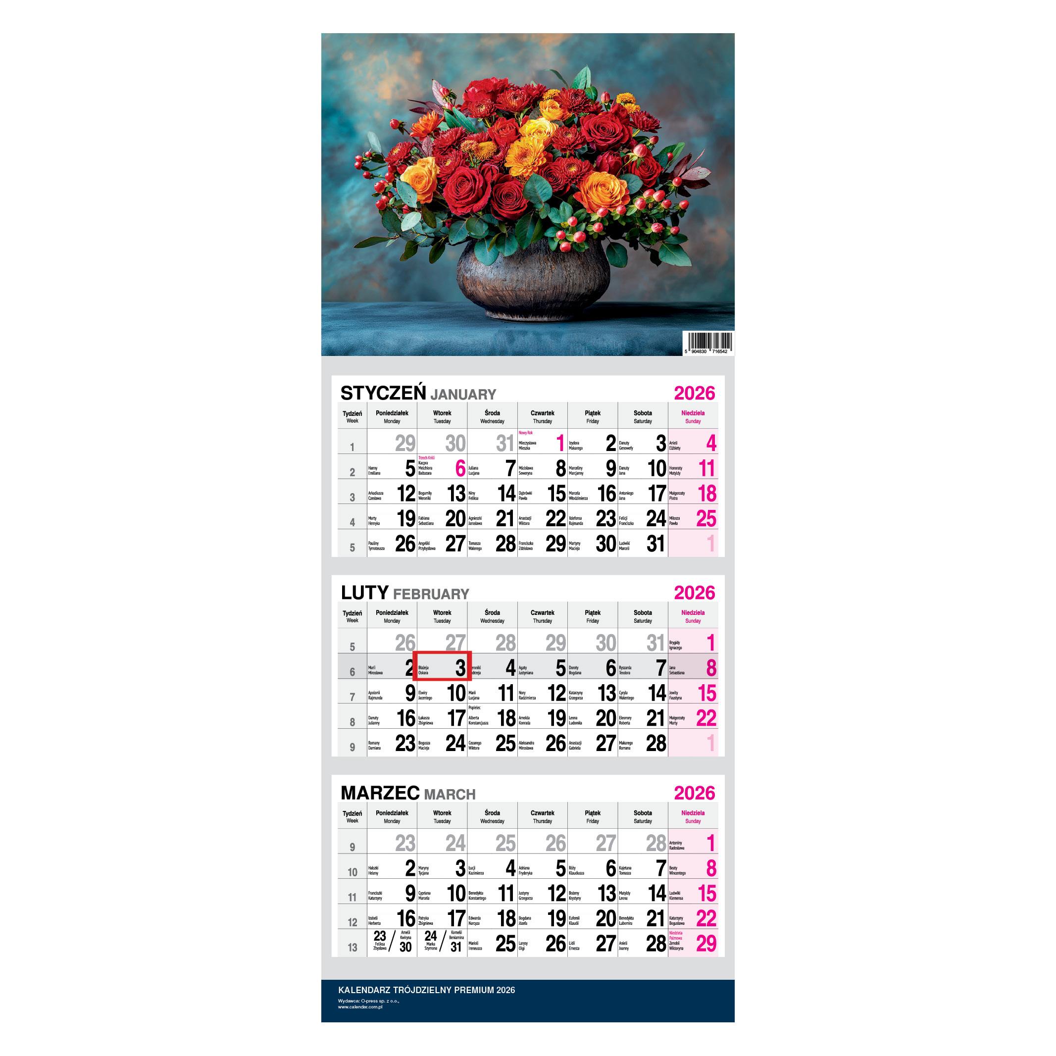 Kalendarz 2026 trójdzielny premium Twarda Główka