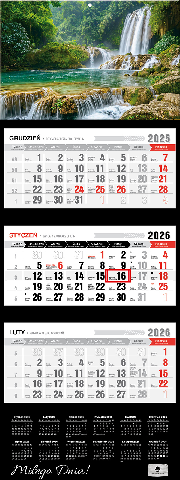 Opakowanie Kalendarz 2026 trójdzielny premium wodospad