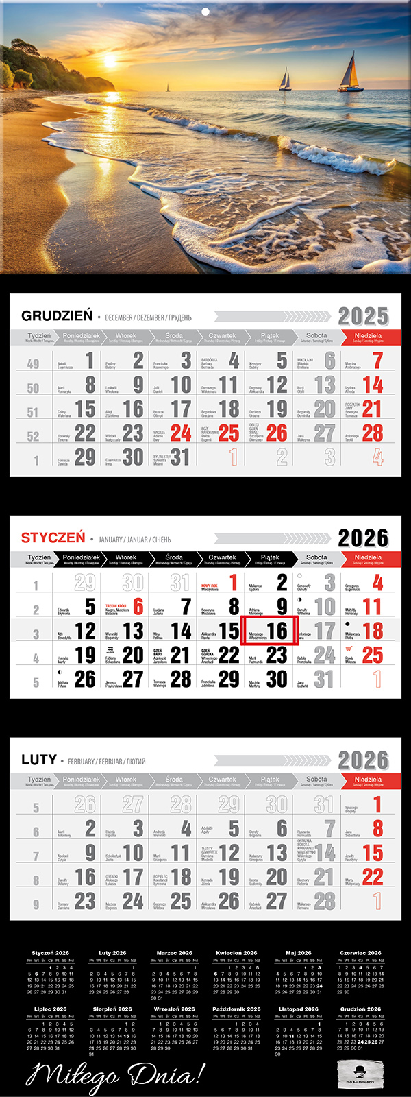 Opakowanie Kalendarz 2026 trójdzielny premium żaglówka