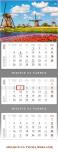 Kalendarz wiszący ścienny z kalendarium w układzie trójdzielnym z ozdobną główka, wypukłą i lakierowaną. Kalendarz składany do formatu A4.