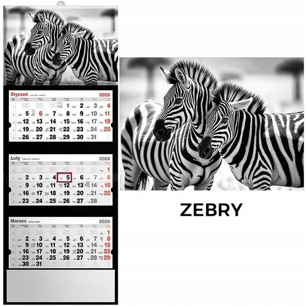 Opakowanie Kalendarz 2026 trójdzielny zebry
