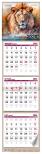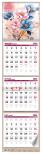 Kalendarz ścienny, trzymiesięczny z okienkiem; 12 kart. Główki wypukłe 2 wzory. Wymiary po rozłożeniu 200x775 mm.