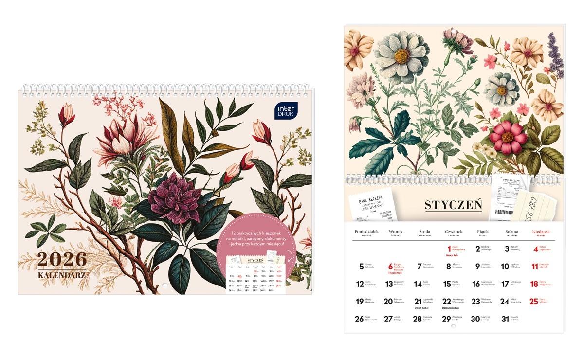 Kalendarz 2026 z kieszonką 25x17,5cm Kwiaty