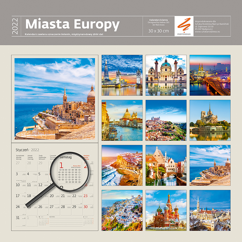 Opakowanie Kalendarz 30 x 30 z naklejkami. Miasta Europy 2022