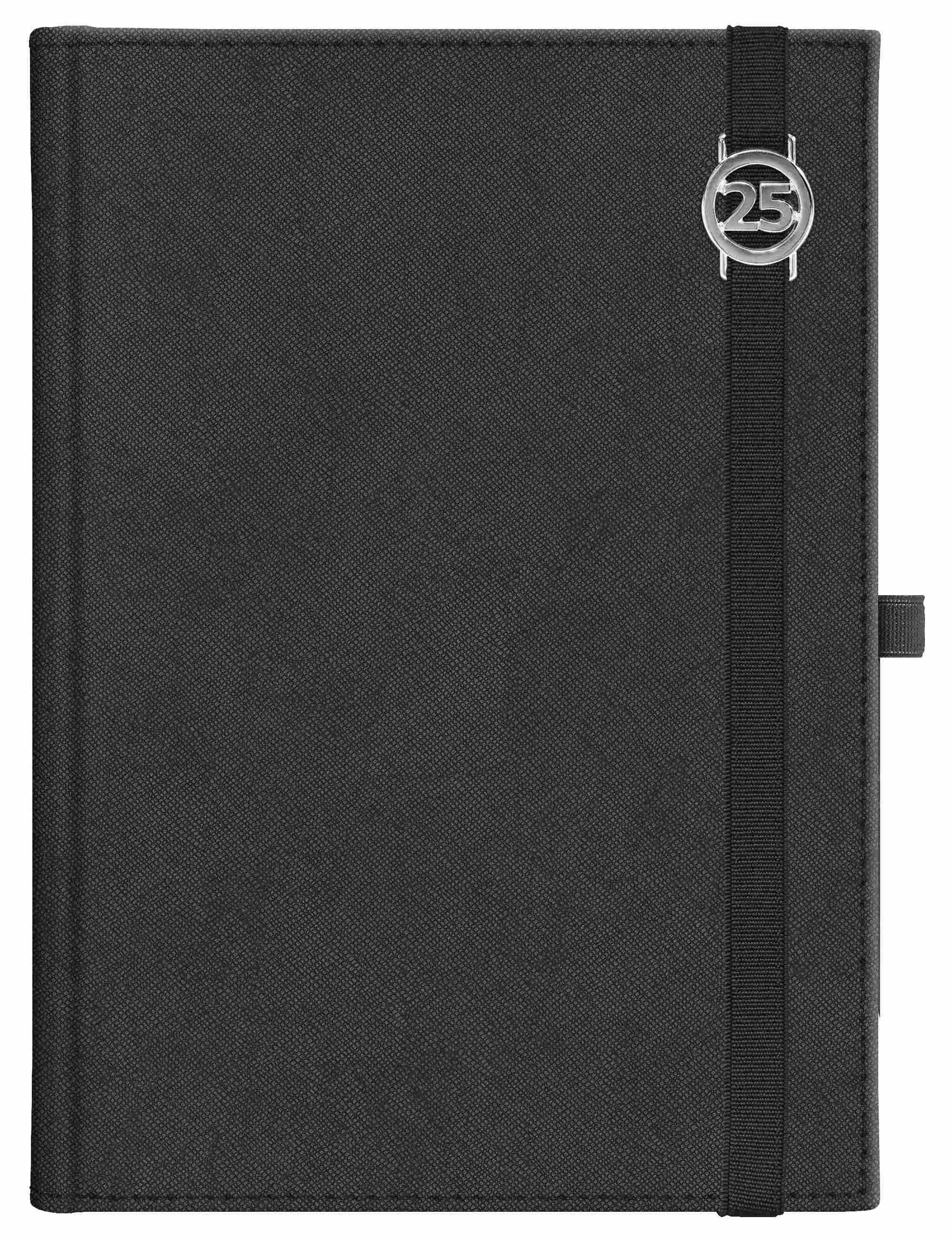 Terminarz książkowy w oprawie Cross z metalową datą na gumce zamykającej . Blok kalendarza szyty nićmi. Terminarz posiada rozbudowaną część informacyjną. Drukowany na papierze kremowym; kapitałka i tasiemka kremowe; posiada wycinane registry miesięczne; przejrzysty układ graficzny kalendarium; oprawa umożliwia wykonanie nadruków, tłoczenia i personalizacji kalendarza nawet na dużych powierzchniach.