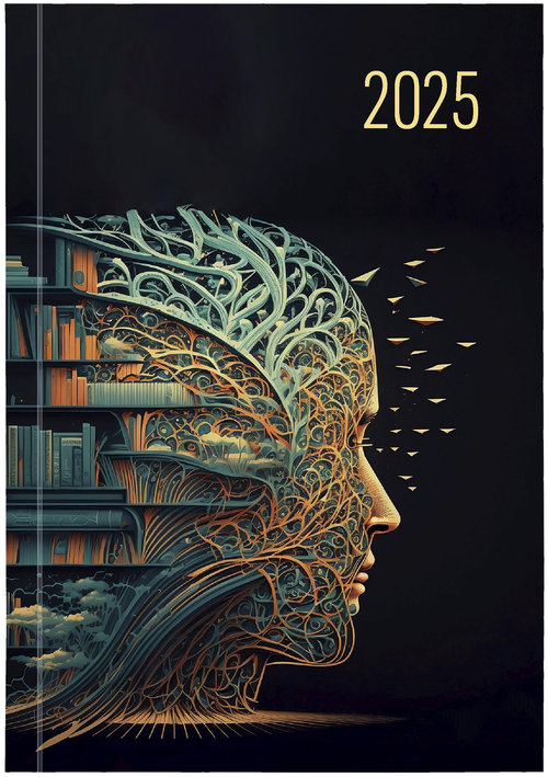 Kalendarz A5 tygodniowy w oprawie PCV bezbarwnej, format bloku 143x204 mm, ilość stron 148, papier biały 70g/m2, nadrukowane registry miesięczne, perforacja narożna, druk szaro-bordowy, rozbudowana część informacyjna, skorowidz teleadresowy.