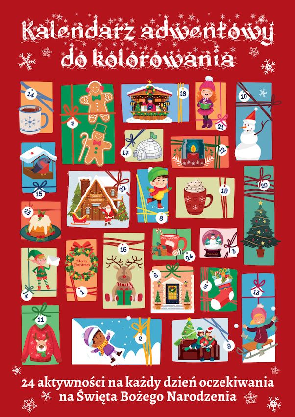 Kalendarz adwentowy do kolorowania. 24 aktywności na każdy dzień oczekiwania na Święta Bożego Narodzenia