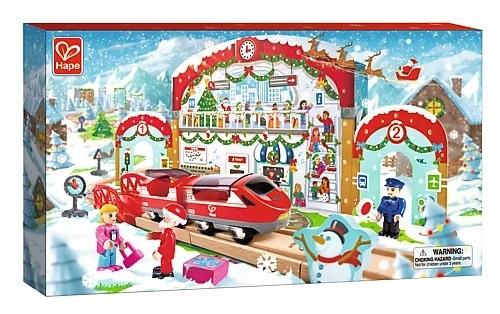 Kalendarz Adwentowy od marki Hape to doskonałe urozmaicenie czasu oczekiwania na Święta Bożego Narodzenia. Rozkładane pudełko tworzy przestrzeń w której znajduje się Stacja Świętego Mikołaja. Elementy zestawu tworzą drewniany tor, po którym jeździ pociąg.