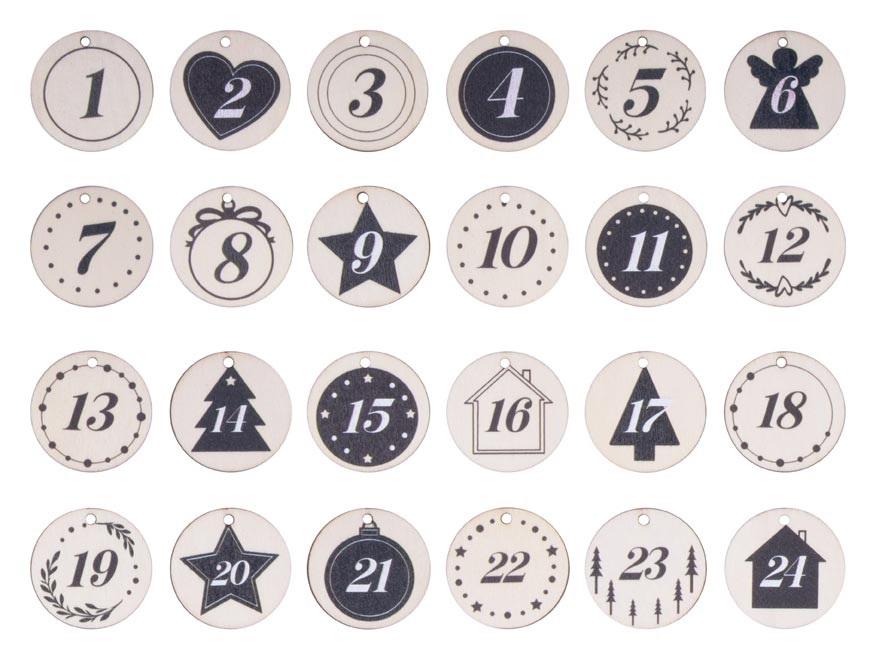Opakowanie Kalendarz adwentowy zawieszka drewniana kółka 4cm