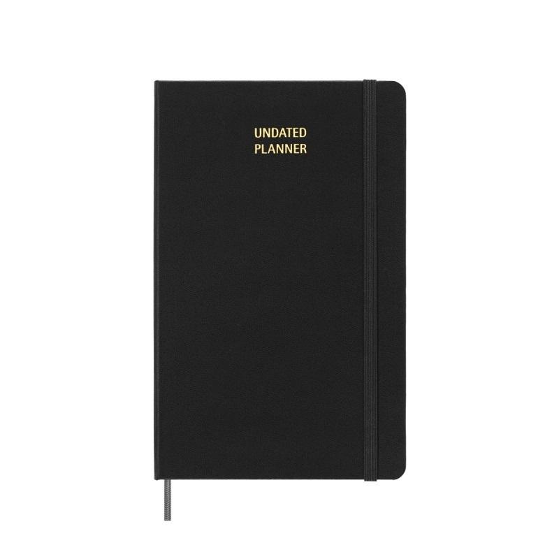 Odkryj niedatowany kalendarz firmy Moleskine. Z uporządkowanymi stronami w kolorze kości słoniowej, ma wszystkie praktyczne i znane cechy tygodniowego planera Moleskine, z wyjątkiem dat.