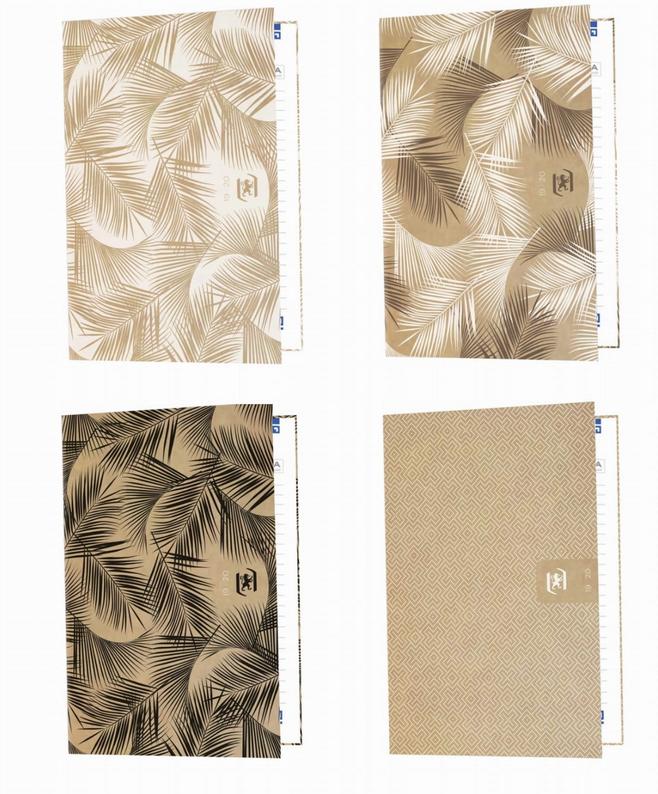okładka z naturalnego kartonu, zadrukowana wzorami