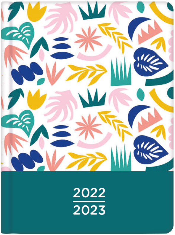 o kalendarz książkowy 2022/2023, o 18 miesięcy: lipiec 2022 - grudzień 2023, o format: B6, o wymiary: 12,5 x 17 x 1,5 cm, o układ: tygodniowy, o wewnątrz: wstążka, plan roku 2022, notatnik, adresownik, linijka, kalendarium dodatkowe na 2022-2023, o gramatura: 120 g/m2, o oprawa: twarda, gąbkowana