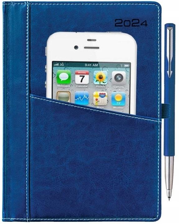 KALENDARZ 2024 DZIENNY A5 PRAKTYCZNY PRAKTYCZNA KIESZONKA na TELEFON, NOTATKI, DOKUMENTY, itp. Okładka z ekoskóry Tłoczenie roku Kolorowa zakładka Wymiary: 212 x 148 mm, format A5 Układ: dzień na stronie (sobota z niedzielą są na jednej stronie) Ilość stron: 324 strony Kalendarium: 3 języczne (PL, GB, D), imieniny i święta, fazy księżyca, wschody i zachody słońca, Zodiak, na dole kalendarium plan całego roku Kolorowa Mapa Polski, krótka część informacyjna