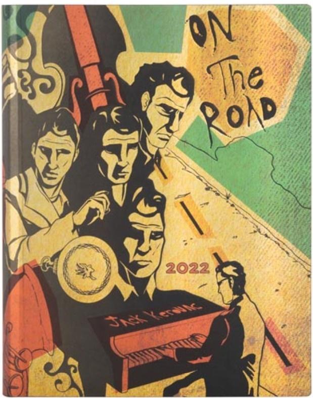 Kalendarz na rok 2022, 12-miesięczny ULTRA FLEXI z kolekcji ekskluzywnej marki Paperblanks. Okładka zawiera jeden z wpisów do pamiętnika Jacka Kerouaca, na podstawie których powstała wydana w 1957 roku powieść ""W drodze"", będąca manifestem awangardowego literacko-kulturowego ruchu beatników. Autorem ilustracji jest Dominic Ferrari. W środku znajdziemy miejsce na codzienne wpisy, notatki, planery, dwie satynowe wstążki, mini kalendarze, międzynarodowe numery kierunkowe, miejsce do wpisania swoich ważnych numerów, oznaczone wybrane święta międzynarodowe i wiele innych przydatnych informacji. Każdy dzień jest na osobnej stronie, soboty i niedziele są razem. Opisy są w języku angielskim. Kalendarz posiada 384 zszywane strony, format 180x230mm, gramatura 80 gsm. Oprawa elastyczna. Na końcu po wewnętrznej stronie okładki jest koperta na luźne notatki lub wizytówki.