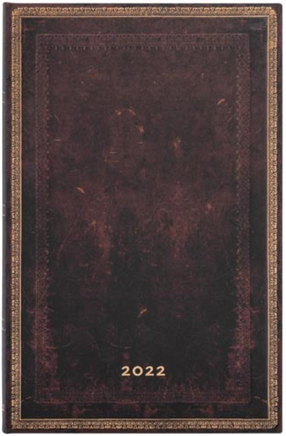 Kalendarz na rok 2022, 12-miesięczny MAXI z kolekcji ekskluzywnej marki Paperblanks. Piękna okładka inspirowana jest marokańską skórą, używaną w renesansie do oprawy książek. W środku znajdziemy miejsce na codzienne wpisy, notatki, planery, dwie satynowe wstążki, mini kalendarze, międzynarodowe numery kierunkowe, miejsce do wpisania swoich ważnych numerów, oznaczone wybrane święta międzynarodowe i wiele innych przydatnych informacji. Format Maxi typu Horizontal - rozplanowany cały tydzień na 2 stronach. Opisy są w języku angielskim. Kalendarz posiada 160 zszywanych stron, format 135x210mm, gramatura 100 gsm. Oprawa twarda. Na końcu po wewnętrznej stronie okładki jest koperta na luźne notatki lub wizytówki. Zamknięcie na gumkę.