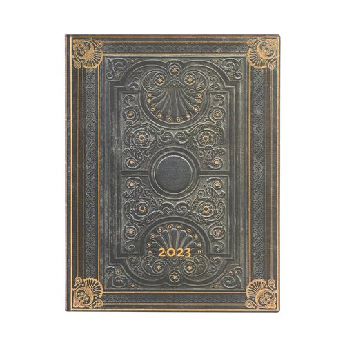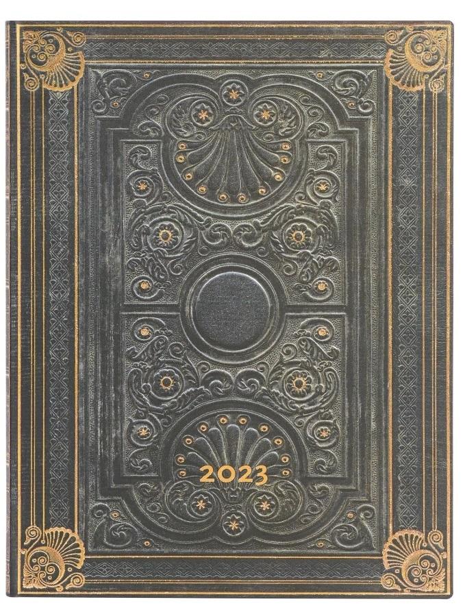 Kalendarz 2023 ekskluzywnej marki Paperblanks. Seria flexi - elastyczna oprawa i grzbiet. Format ultra typu vertical - cały tydzień rozplanowany jest na 2 stronach z podziałką godzinową. Kalendarium w języku angielskim. W środku miejsce na notatki, roczny planer, oznaczone wybrane święta międzynarodowe, mini kalendarium, międzynarodowe numery telefonów, strefy czasowe, dodatkowe informacje, mini skorowidz na adresy i telefony. Wymiary 180x230 mm, 176 stron. Kalendarz posiada 2 satynowe wstążki jako zakładki. Na końcu na wewnętrznej stronie okładki jest koperta na drobne notatki czy paragony. Papier ekologiczny, bezkwasowy, gramatura 100. Okładka odtwarza wzór użyty w 1829 roku przez francuskie wydawnictwo A. & W. Galignardi do wydania Dzieł Poetyckich Thomasa Moora - irlandzkiego poety i artysty, którego melodie irlandzkie stały się niezwykle popularne na przełomie XIX i XX wieku.