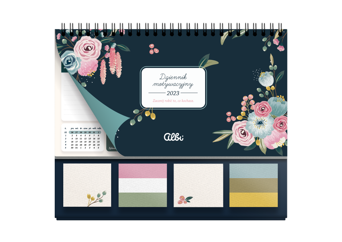 Kalendarz rodzinny Mój szczęśliwy rok, stojący, z karteczkami samoprzylepnymi, motyw: rośliny.