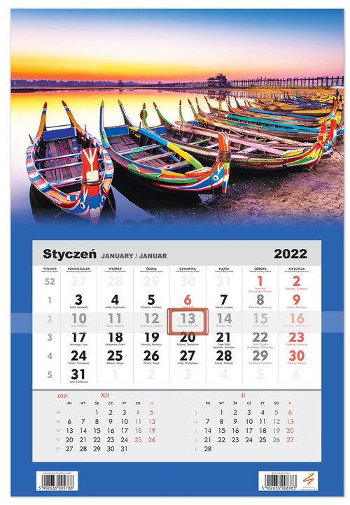 Opakowanie Kalendarz ścienny 2022 jednodzielny Łódki
