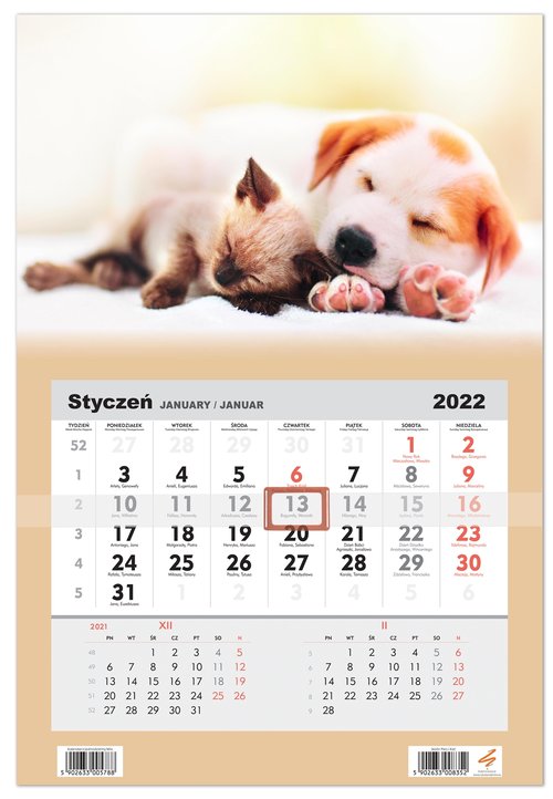 Opakowanie Kalendarz ścienny 2022 jednodzielny Pies i Kot