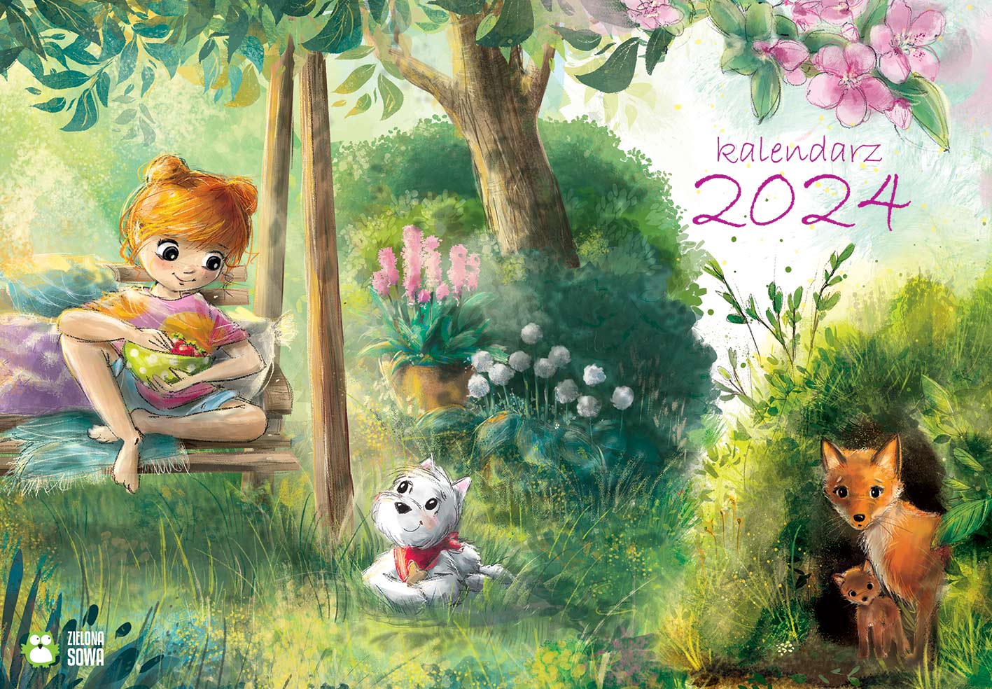 Kalendarz ścienny na 2024 rok z przepięknymi, kolorowymi ilustracjami z książek z serii "Misia i jej mali pacjenci" oraz "Popik i jego wielkie przygody".